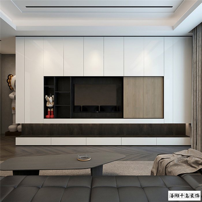 最后,洛陽裝修公司的小編提醒大家,一整面電視柜的設(shè)計(jì),要遵循二八原則,盡量80%都有門板蓋住,預(yù)留20%開放式空間就可以了,這樣把柜門關(guān)起來后,才不會(huì)看到很多雜物,會(huì)顯得整齊很多!電視柜的顏色建議選白色或者原木色的,就算是小戶型,也不會(huì)顯得有壓抑感!