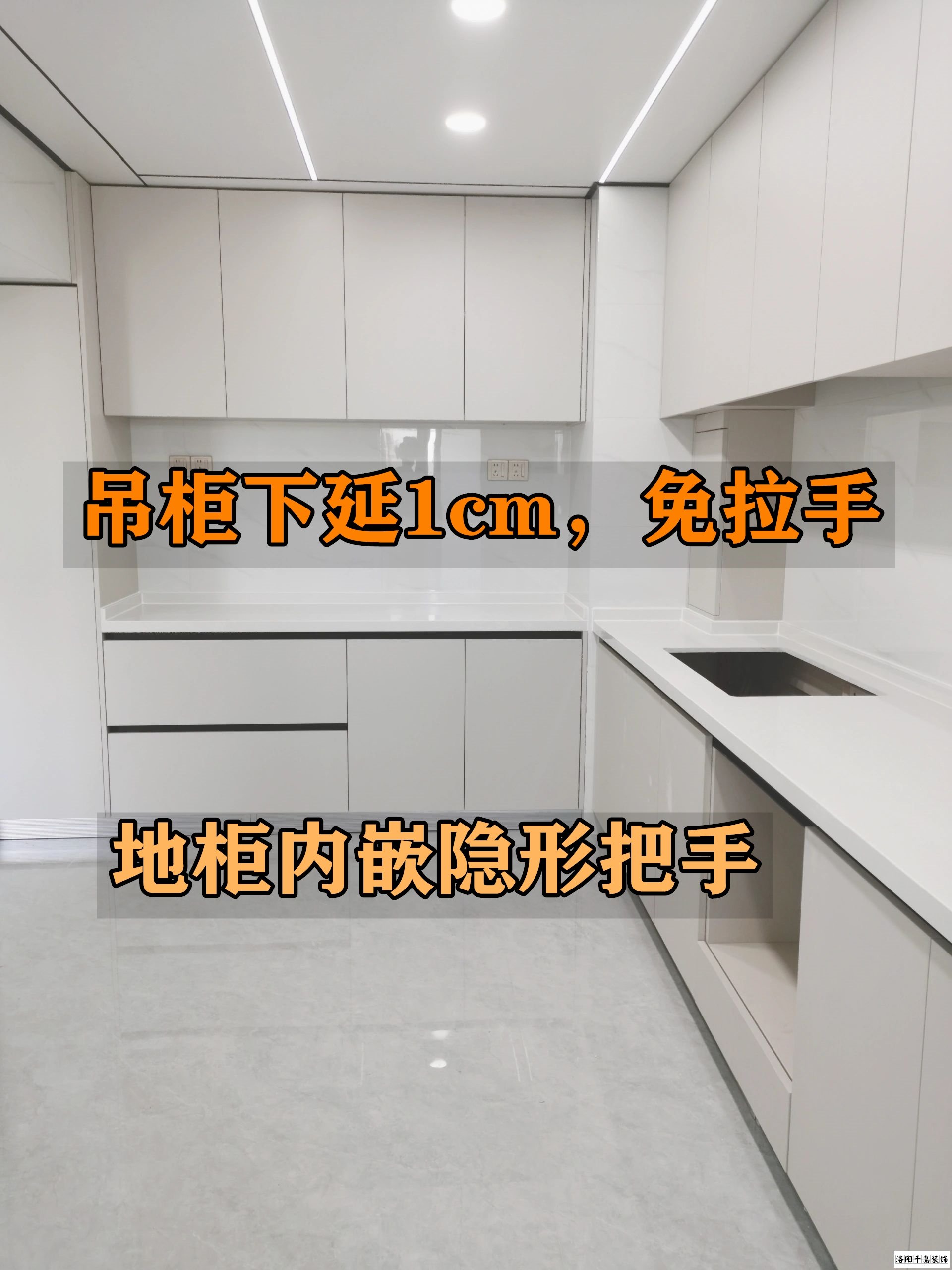 其次,櫥柜把手一個(gè)都不要做,容易磕碰不說(shuō),時(shí)間久了到處都是油,擦都擦不住,地柜柜我們就內(nèi)嵌這種隱形把手,吊柜我們就這樣多做一厘米,手輕輕一摳就開(kāi)了,而且呢,也不多花一分錢,整體看上去啊,更高級(jí)了。