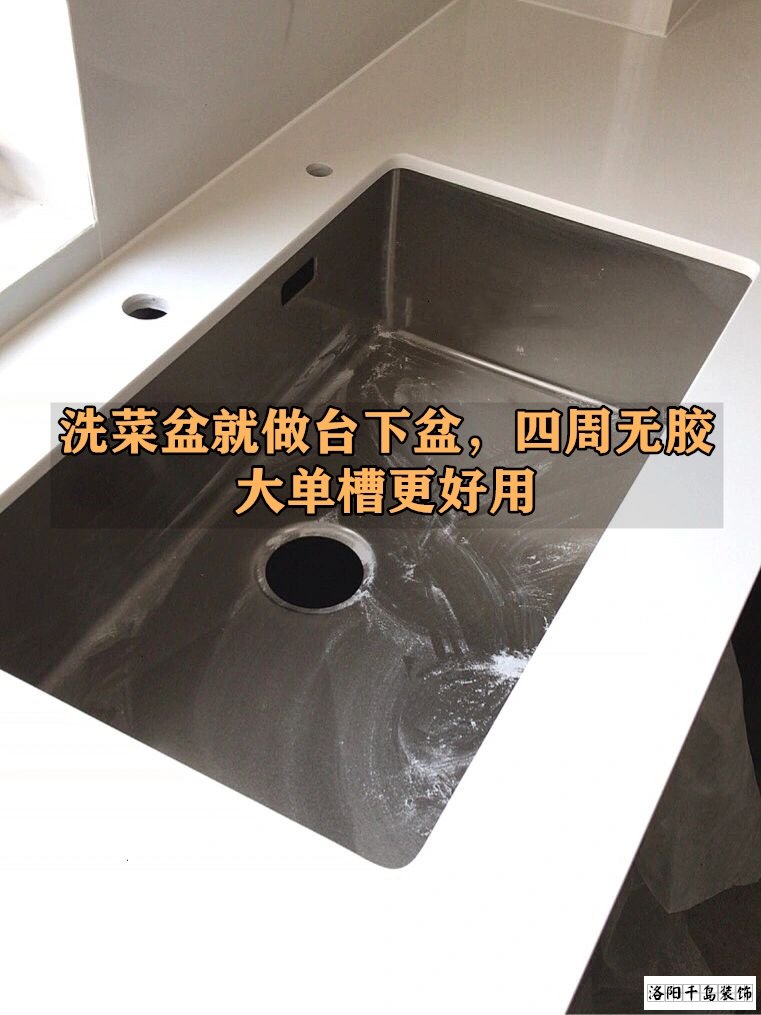 洗菜池就做這種臺(tái)下盆,四周沒(méi)有膠,不會(huì)發(fā)霉才更好做衛(wèi)生,不過(guò)一定要記得要做這種大單槽,洗個(gè)鍋啊什么的都沒(méi)問(wèn)題,要是想像雙槽一樣分開(kāi)洗,你就搭配個(gè)瀝水籃就好了。