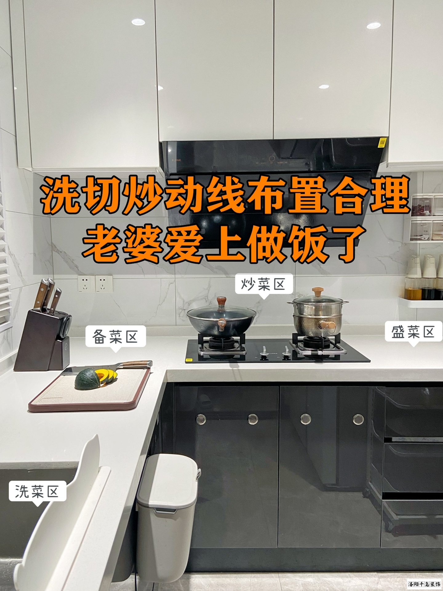 最后想要做飯更順暢,廚房的動(dòng)線,你就按照洗、切、炒來(lái)布置,不走回頭路,做飯更快。