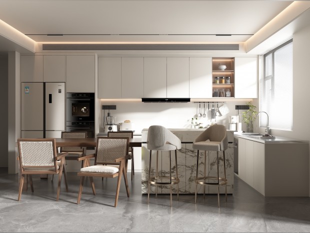 啞光材料的使用能帶來質(zhì)感與高級感的提升。選擇色調(diào)細(xì)膩的啞光材料,尤其地面和柜門位置,使裝修更加耐看,創(chuàng)造出令人心馳神往的高級效果。