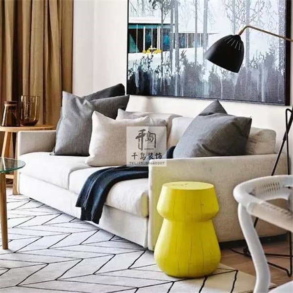 在沙發(fā)的體積很大或是兩個長沙發(fā)擺在一起的情況下,矮茶幾就是很好的選擇,高度應該和沙發(fā)坐墊的位置持平。