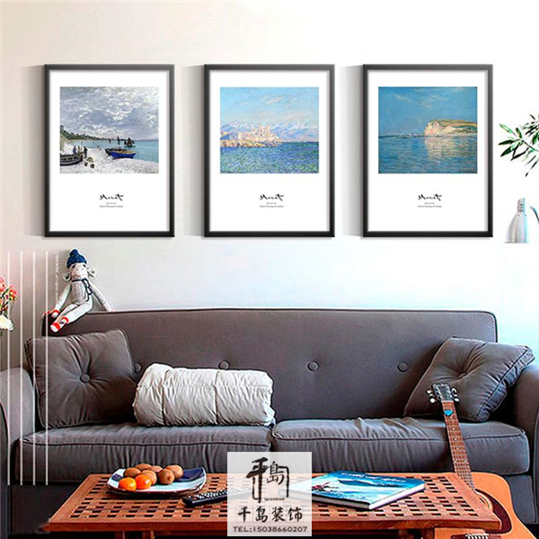 沙發(fā)背景墻可以選擇掛幾幅簡約的掛畫,這件莫奈的翻印油畫,顏色比較豐富,留白的畫面顯得非常的有氣質(zhì),黑色邊框符合了對于北歐風(fēng)格定律的恪守,配合上柔柔的射燈,掛起來的效果非常贊。